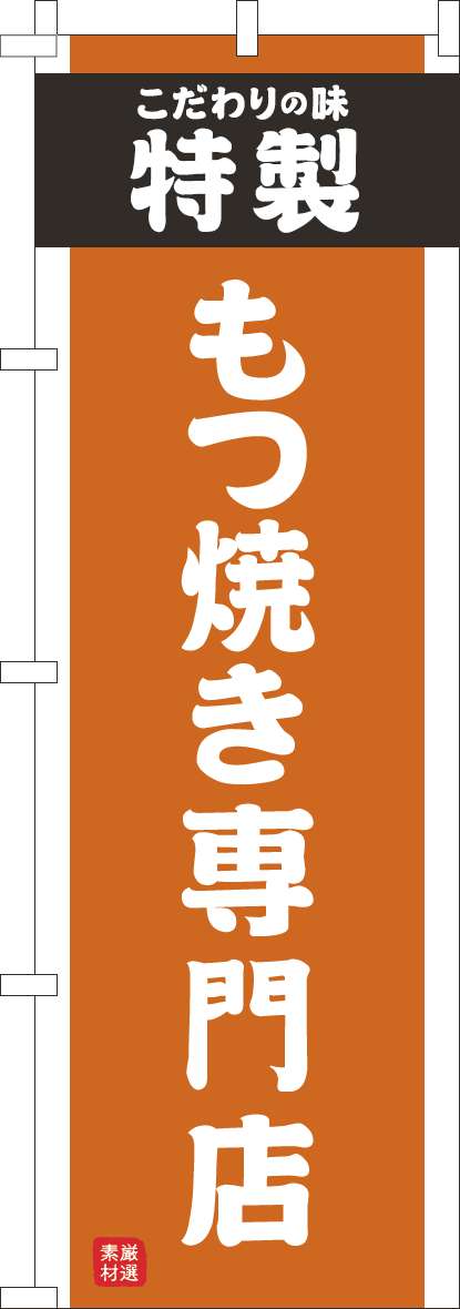 もつ焼き専門店のぼり旗オレンジ(60×180センチ)_0190286IN