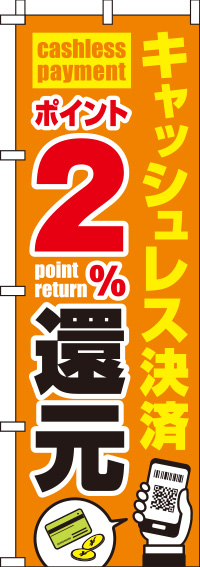 キャッシュレス決済ポイント2%還元のぼり旗(60×180センチ)_0110251IN