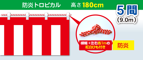 防炎紅白幕 防炎トロピカル 高さ180cm×長さ9.0m 紅白ひも付